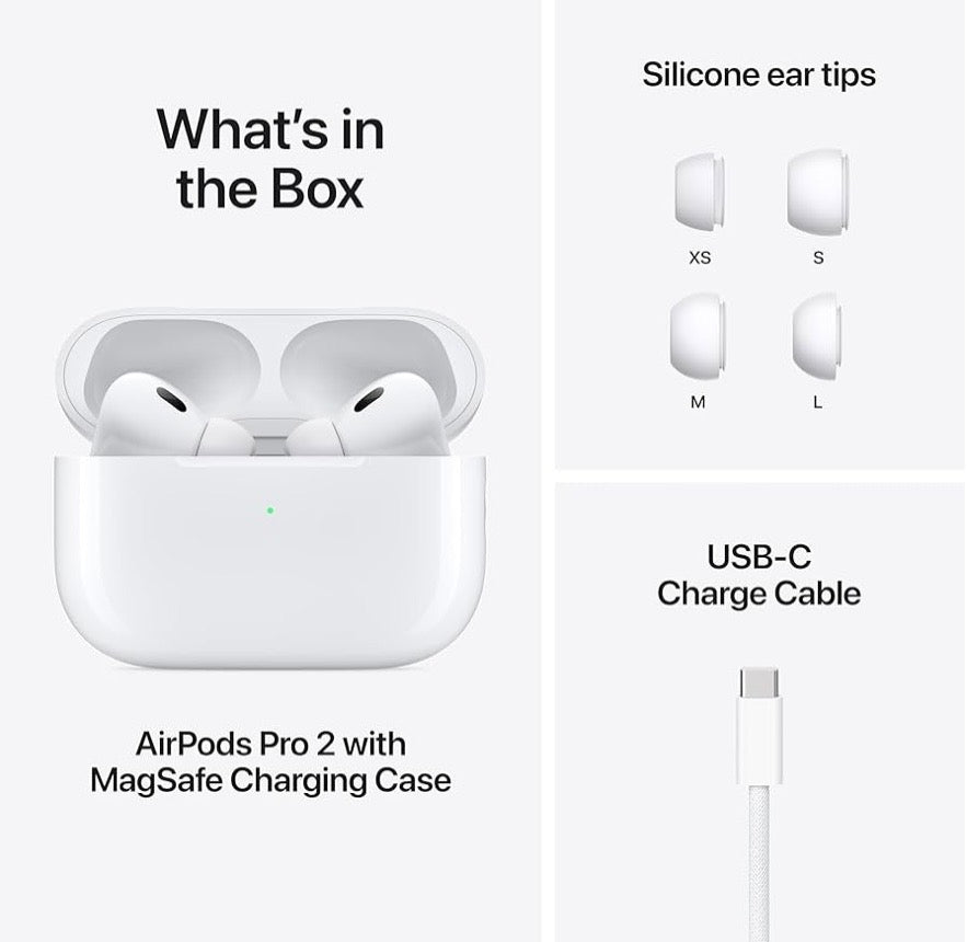 The Apple AirPods Pro (2nd Generation) feature the powerful H2 chip for enhanced sound quality, smarter Active Noise Cancellation, and improved Transparency Mode. They offer Personalized Spatial Audio for an immersive listening experience and even include a new hearing aid–style feature for clearer conversations and environmental awareness. With a redesigned USB-C charging case, longer battery life, and a comfortable in-ear fit, these Bluetooth earbuds deliver high-fidelity sound, seamless Apple integration, and exceptional everyday performance.
